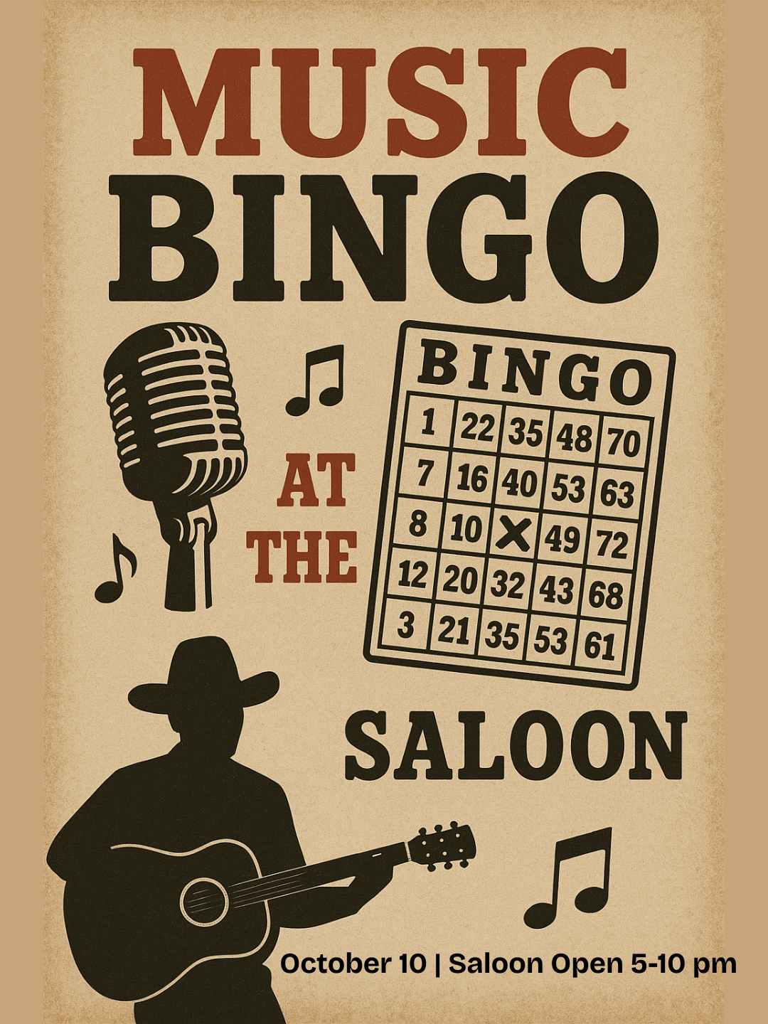 Join us at The Saloon on Friday, October 10, 2025 for our very first Music Bingo Night!