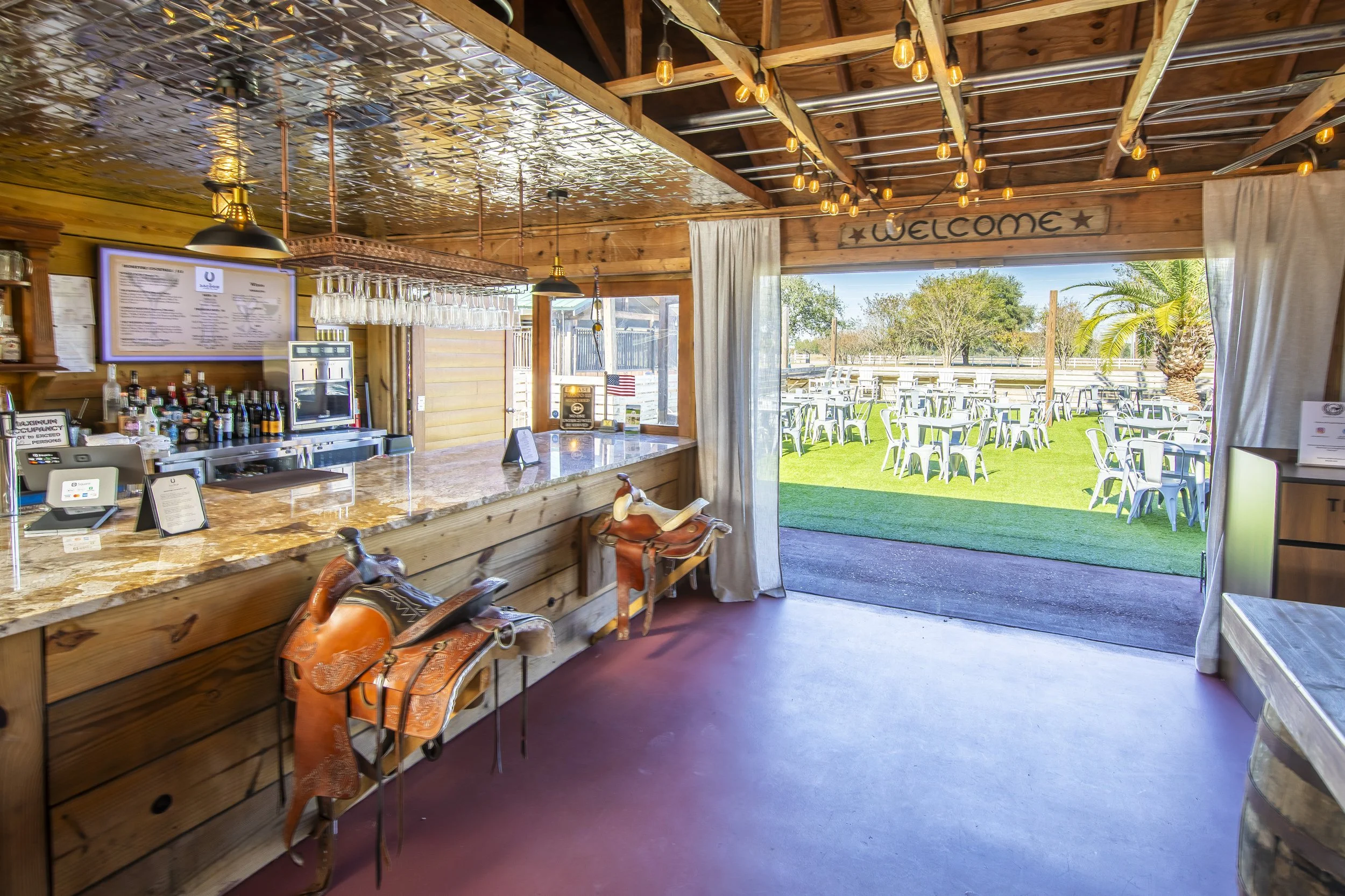 Unique Atmosphere: Enjoy the charm of our Western-themed Saloon complete with barstools made out of genuine saddles, swinging Saloon doors, and stunning views.