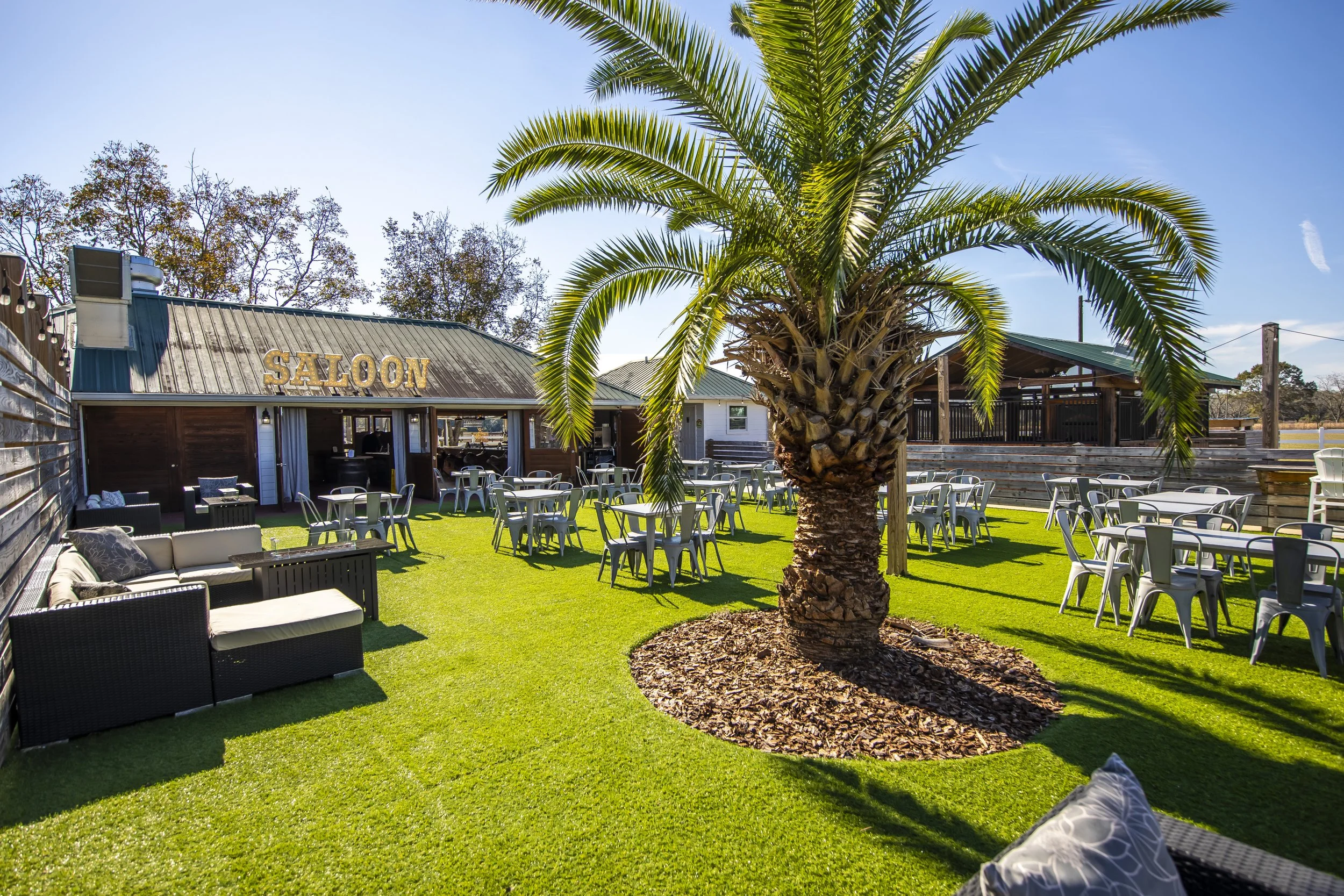 Corral Seating Area: Included with your Saloon rental is access to our chic Corral Seating area complete with tables, chairs, couches, firetables, and romantic string lighting.