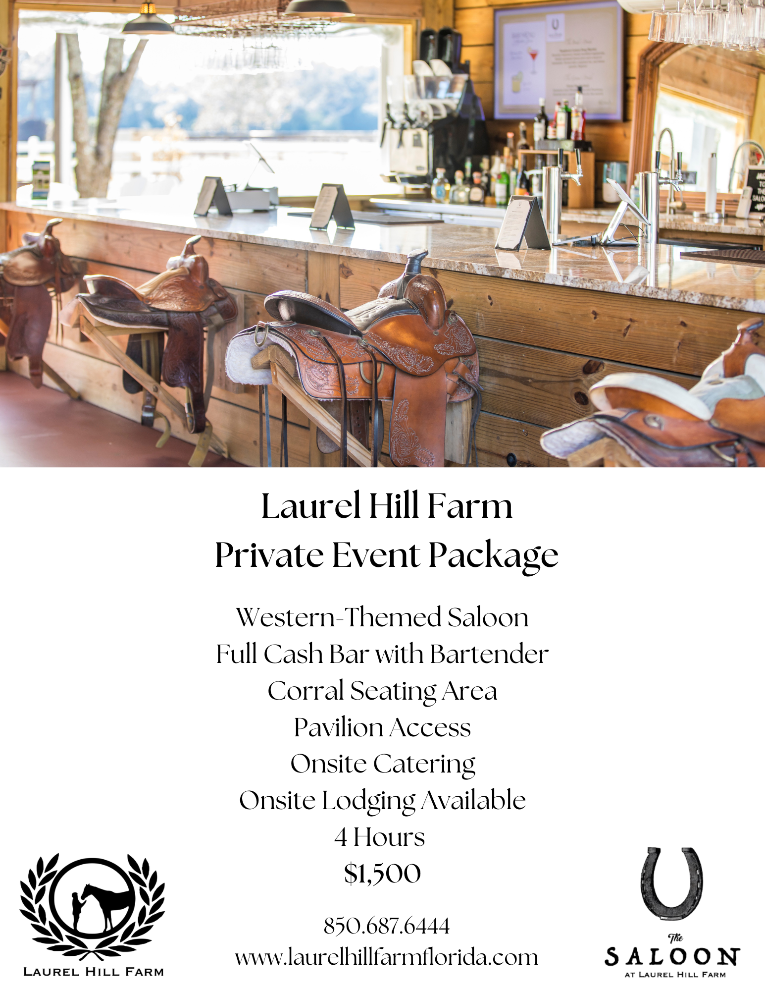 The Saloon at Laurel Hill Farm offers an unforgettable setting for gatherings of all kinds. The Saloon is complete with a full bar and offers onsite catering.